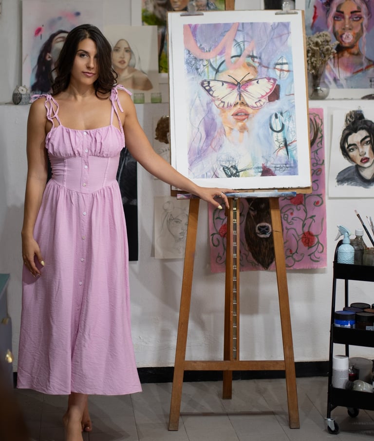 Dipingo donne. Donne nella loro interezza — nella loro forza e nella loro fragilità, in quella dualità che le rende uniche e straordinarie. Celebro la loro bellezza, soprattutto quella interiore: quella che non sempre viene vista, ma che è la più potente.